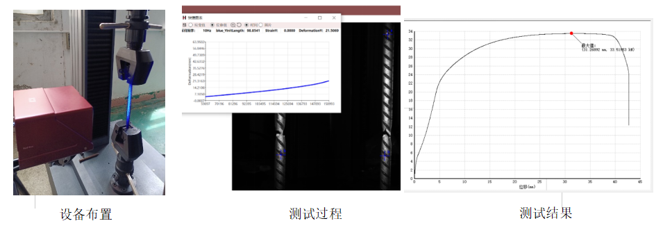 8. 长量程测量:视频引伸计不受引伸计量程的限制,可以在较大的应变范围内(从微小变形到断裂)进行测量,适合用于不同金属材料的全范围力学性能测试。